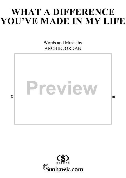 "What a Difference You've Made in My Life" Sheet Music by Archie Jordan