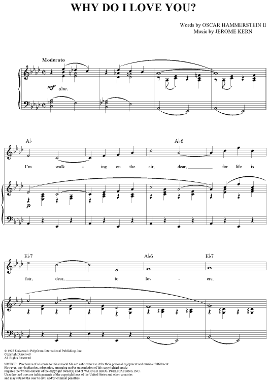 Digital Sheet Music for Why Do I Love You? by Jerome Kern, Oscar Hammerstein II scored for Piano/Vocal/Chords; id:292557