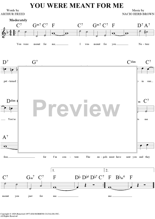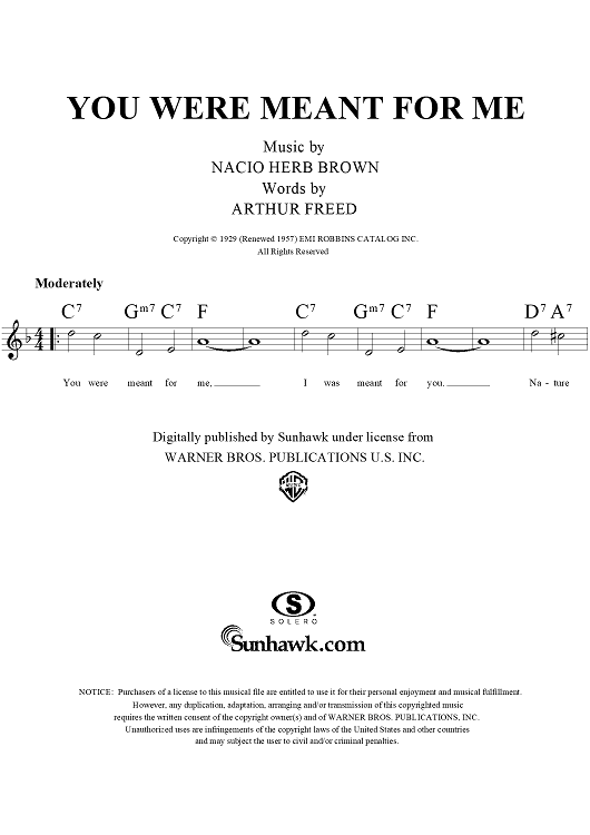 Digital Sheet Music for You Were Meant For Me by Nacio Herb Brown, Arthur Freed scored for Lead Sheet; id:119819