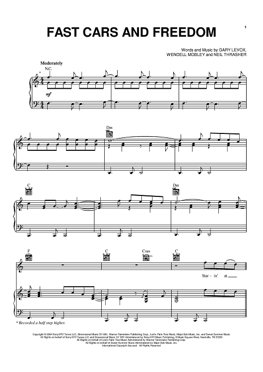 Digital Sheet Music for Fast Cars And Freedom by Wendell Mobley, Neil Thrasher, Rascal Flatts, Gary Levox scored for Piano/Vocal/Chords; id:384000