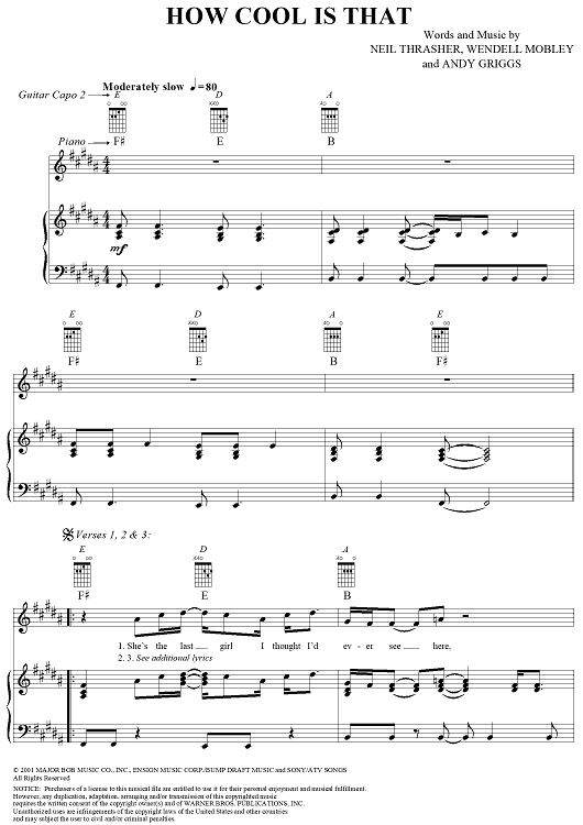 Digital Sheet Music for How Cool Is That by Wendell Mobley, Neil Thrasher, Andy Griggs scored for Piano/Vocal/Chords; id:285411