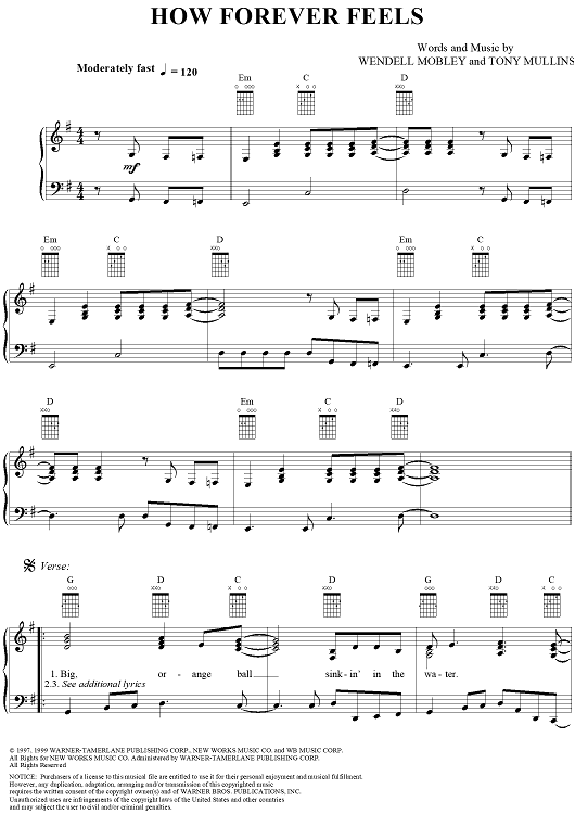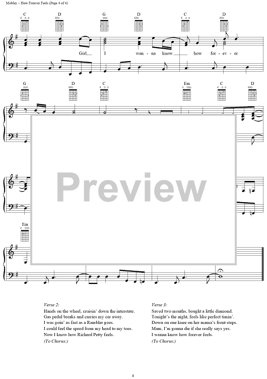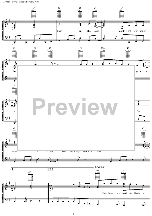 Digital Sheet Music for How Forever Feels by Kenny Chesney, Tony Mullins, Wendell Mobley scored for Piano/Vocal/Chords; id:113834