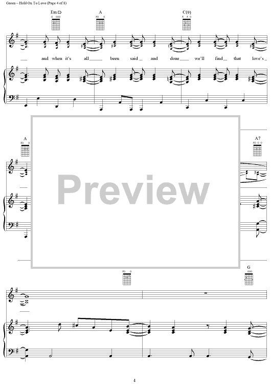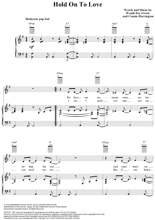 Digital Sheet Music for Hold On To Love by Wendi Foy Green, Sierra, Connie Harrington scored for Piano/Vocal/Chords; id:267846