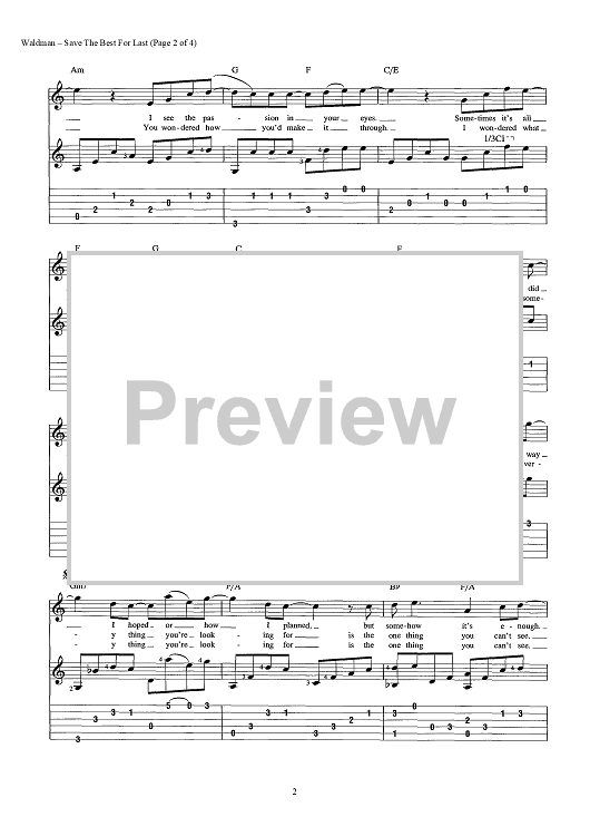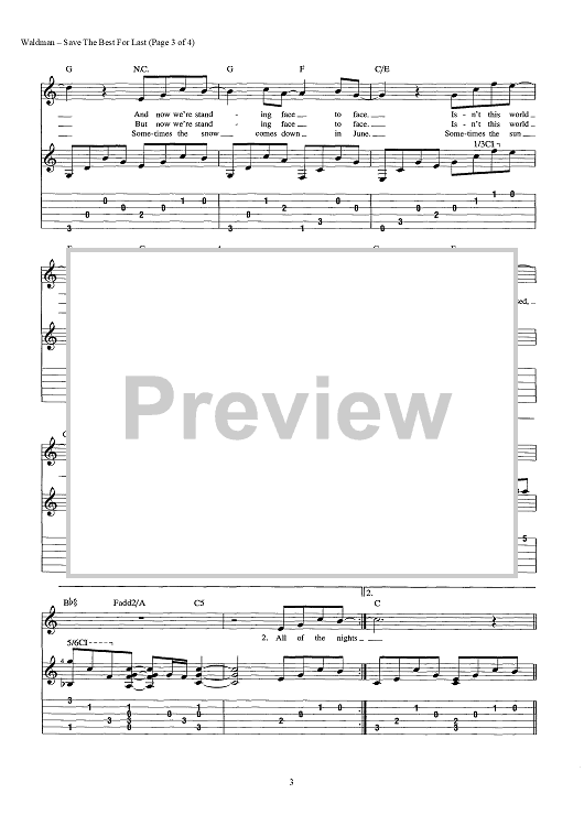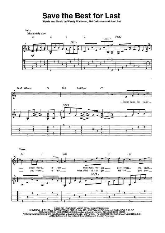 Digital Sheet Music for Save the Best for Last by Jon Lind, Wendy Waldman, Phil Galdston scored for Guitar Tab/Vocal/Chords; id:443643