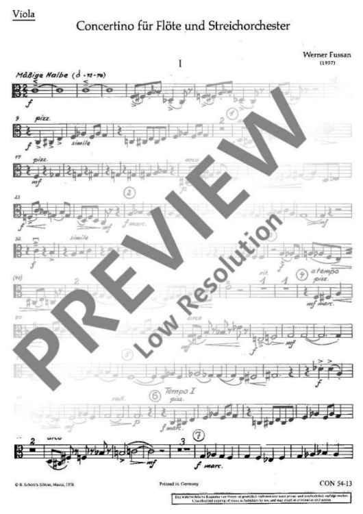 Digital Sheet Music for Concertino - Viola by Werner Fussan scored for Flute And String Orchestra; id:482117