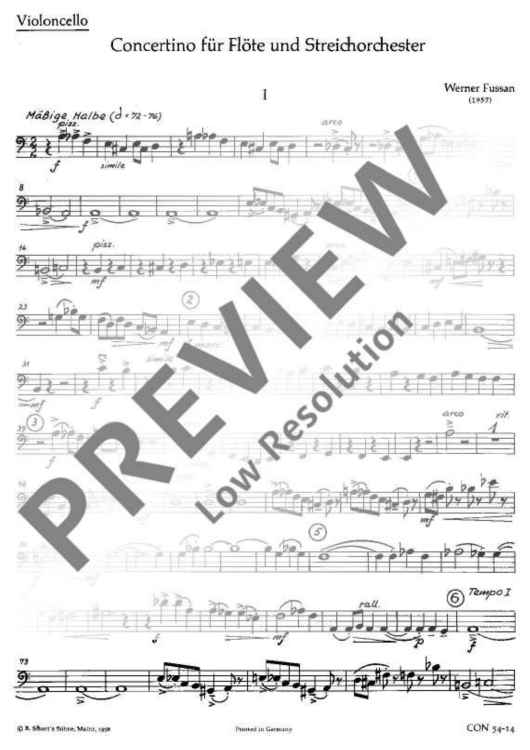Digital Sheet Music for Concertino - Violoncello by Werner Fussan scored for Flute And String Orchestra; id:482105