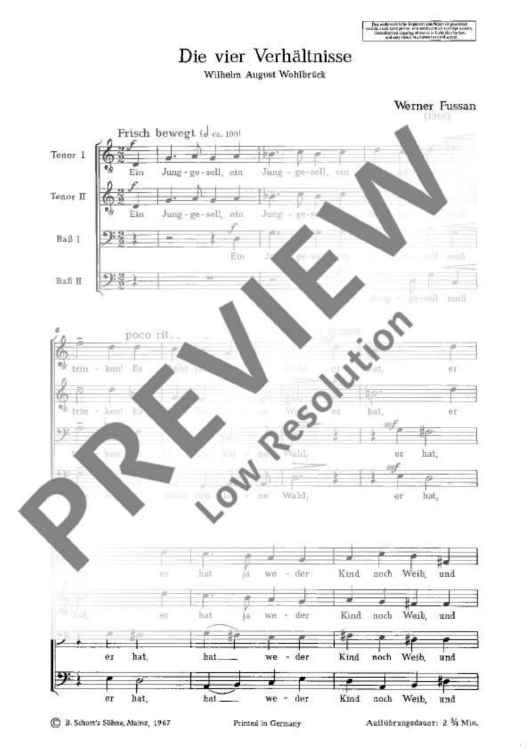 Digital Sheet Music for Die vier Verhältnisse - Choral Score by Werner Fussan scored for Men's Choir (ttbb); id:479972