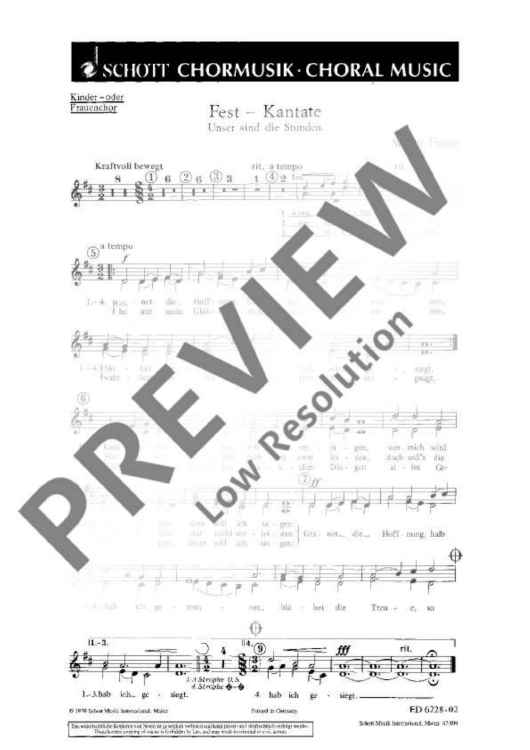 Digital Sheet Music for Fest-Kantate - Choral Score by Werner Fussan scored for Children's Choir (smeza) With Men's Choir (ttbb) And String Orchestra, Trumpet In Bb And Timpani Or Brass Instruments; id:473590