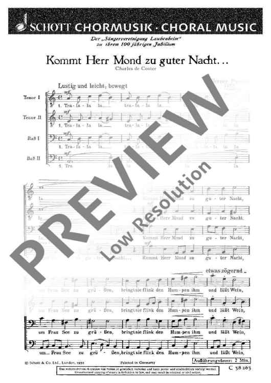 Digital Sheet Music for Kommt Herr Mond zu guter Nacht - Choral Score by Werner Fussan scored for Men's Choir (ttbb); id:479851