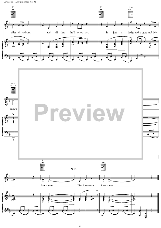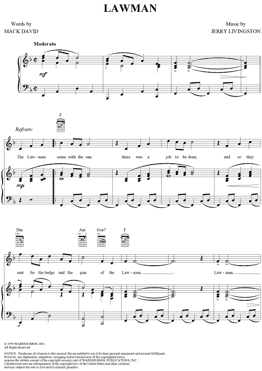 Digital Sheet Music for Lawman by Jerry Livingston, Mack David scored for Piano/Vocal/Chords; id:250743