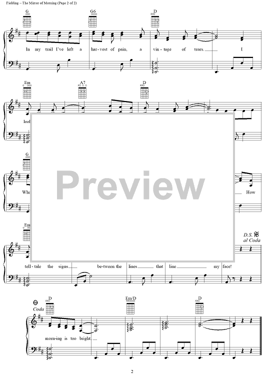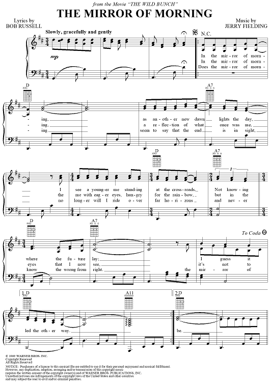 Digital Sheet Music for The Mirror Of The Morning by Jerry Fielding, Bob Russell scored for Piano/Vocal/Chords; id:241795