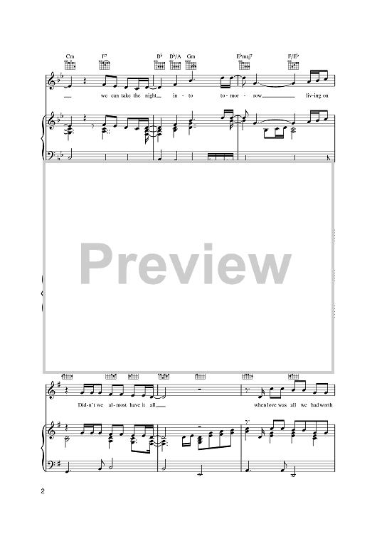 "Didn't We Almost Have It All" Sheet Music by Whitney Houston