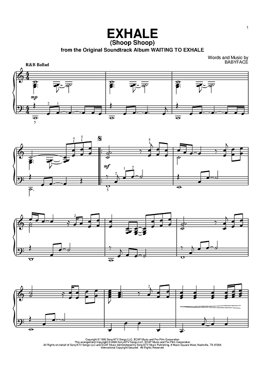 Digital Sheet Music for Exhale (Shoop Shoop) by Babyface, Whitney Houston scored for Piano; id:384972