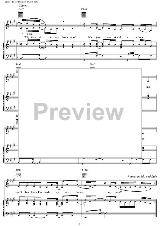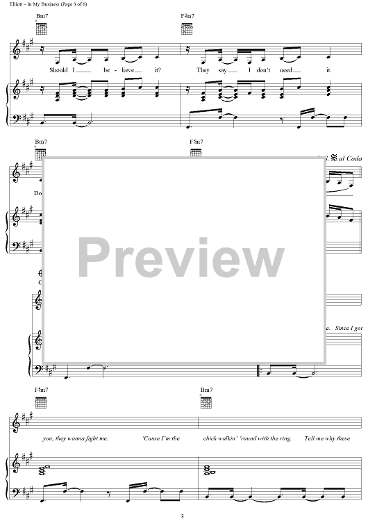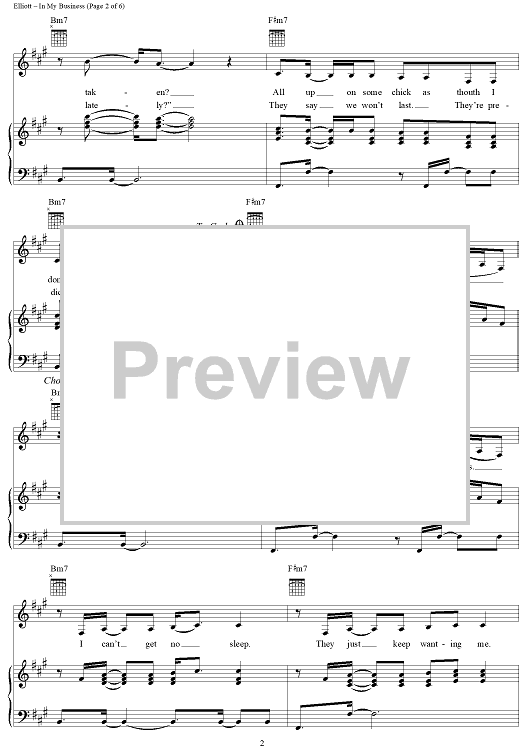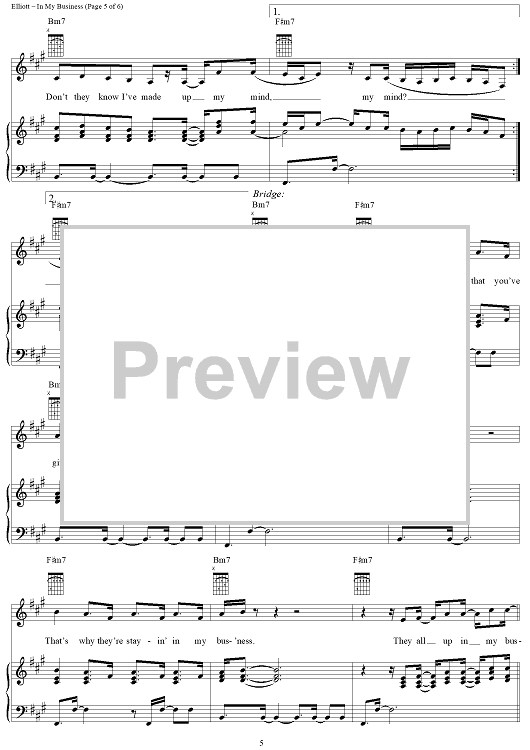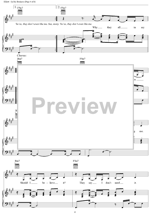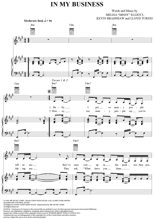 Digital Sheet Music for In My Business by Missy Elliott, Lloyd Turner, Kevin Bradshaw, Whitney Houston scored for Piano/Vocal/Chords; id:270500