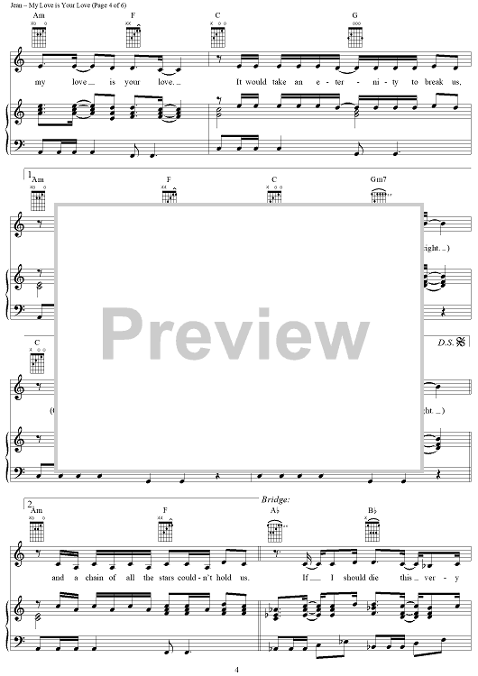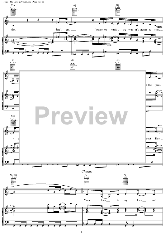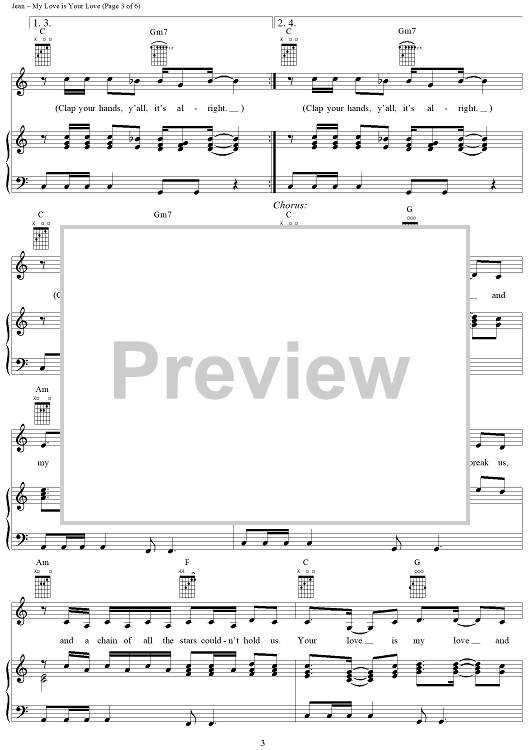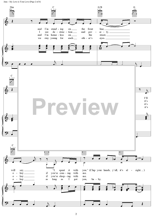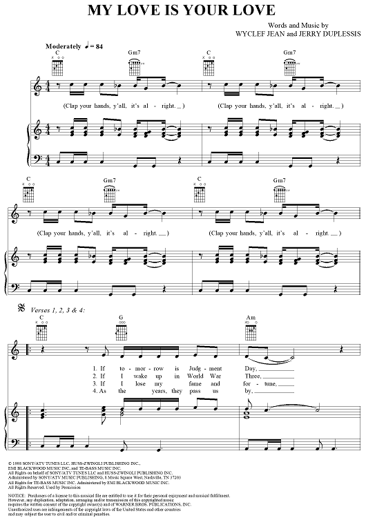 Digital Sheet Music for My Love Is Your Love by Wyclef Jean, Jerry Duplessis, Whitney Houston scored for Piano/Vocal/Chords; id:266213