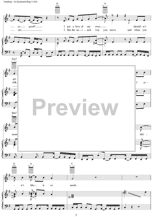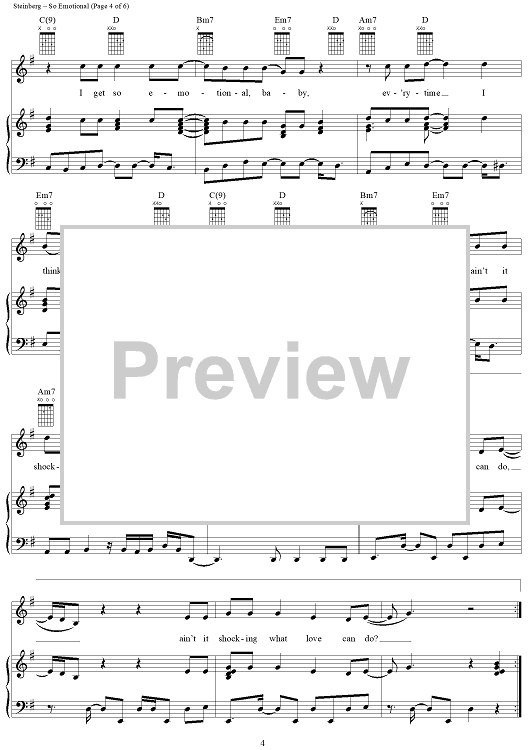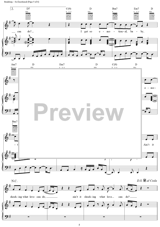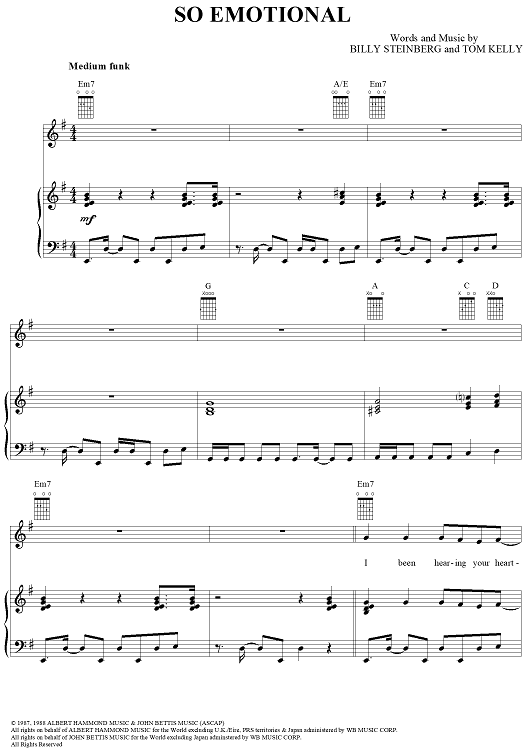 Digital Sheet Music for So Emotional by Billy Steinberg, Tom Kelly, Whitney Houston scored for Piano/Vocal/Chords; id:119707