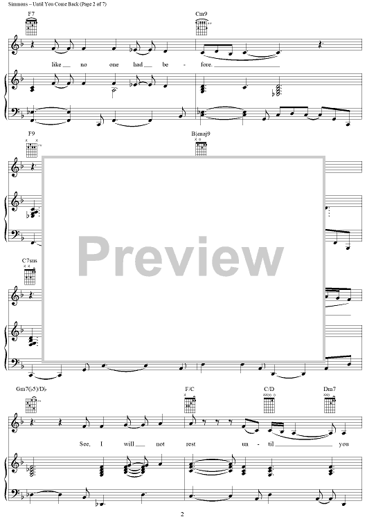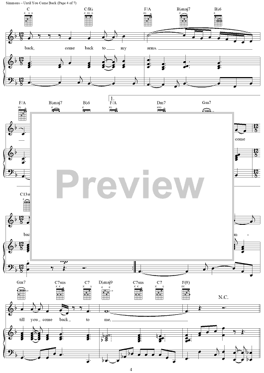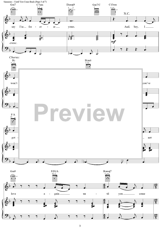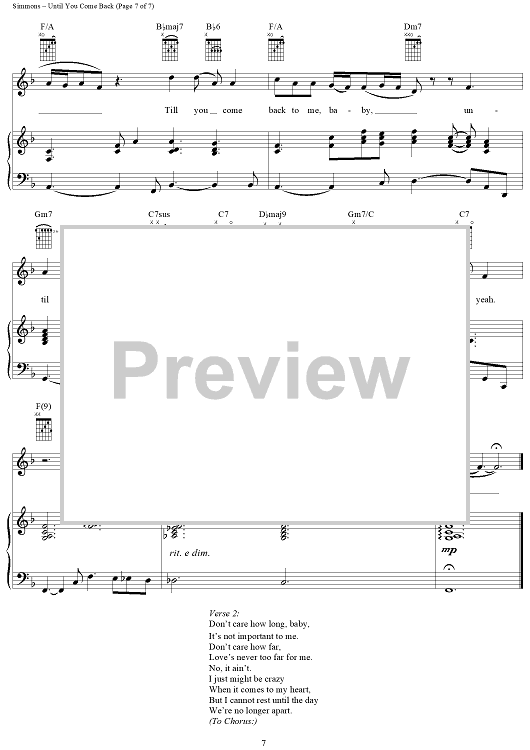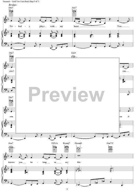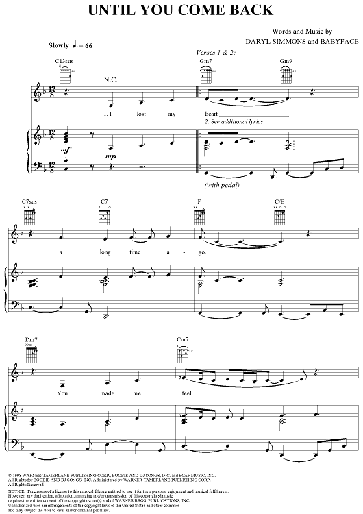 Digital Sheet Music for Until You Come Back by Daryl Simmons, Babyface, Whitney Houston scored for Piano/Vocal/Chords; id:257954