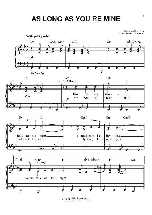 Digital Sheet Music for As Long As You're Mine by Stephen Schwartz scored for Easy Piano; id:380622
