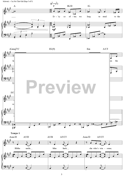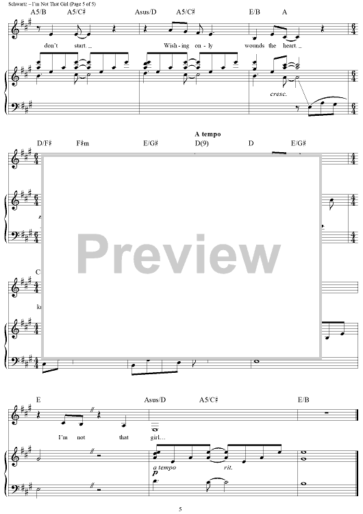 Digital Sheet Music for I'm Not That Girl by Stephen Schwartz scored for Piano/Vocal/Chords; id:365261