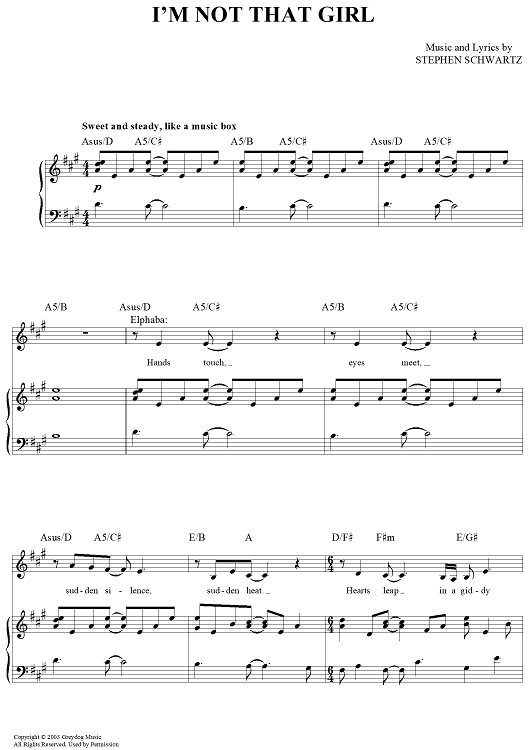 "I'm Not That Girl" Sheet Music by Stephen Schwartz