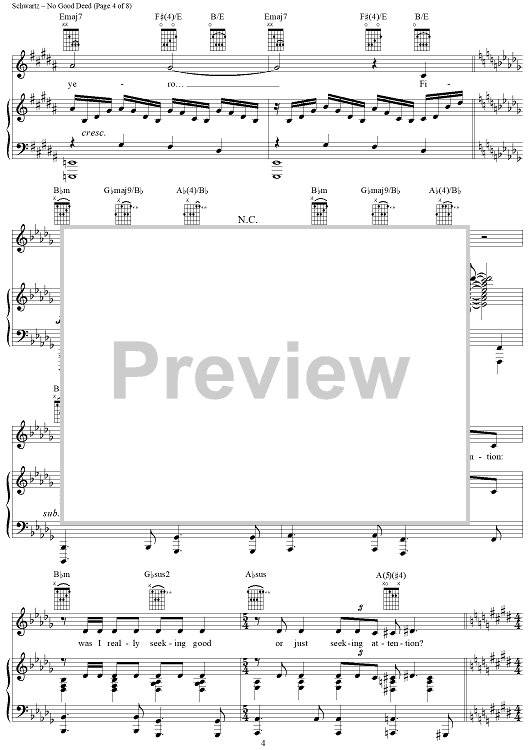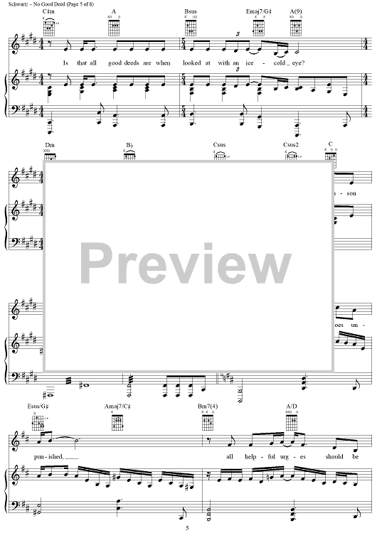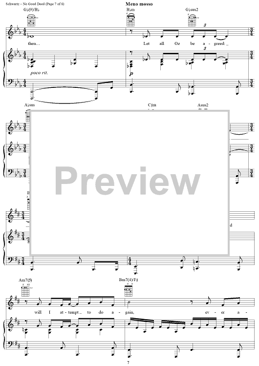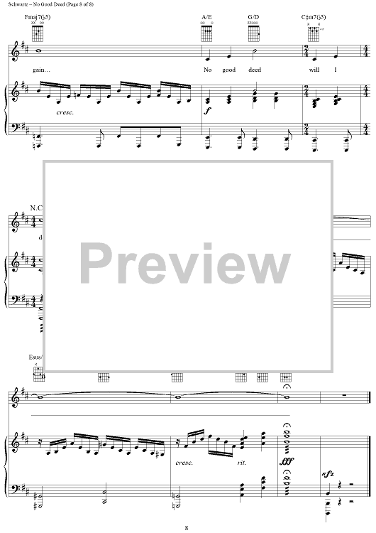 Digital Sheet Music for No Good Deed by Stephen Schwartz scored for Piano/Vocal/Chords; id:367214
