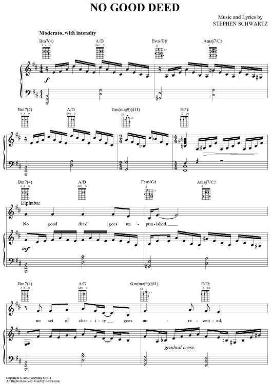 "No Good Deed" Sheet Music by Stephen Schwartz