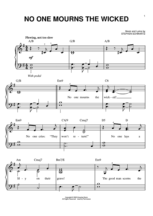 "No One Mourns The Wicked" Sheet Music by Stephen Schwartz