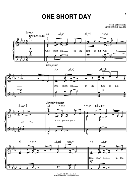 Digital Sheet Music for One Short Day by Stephen Schwartz scored for Easy Piano; id:380618
