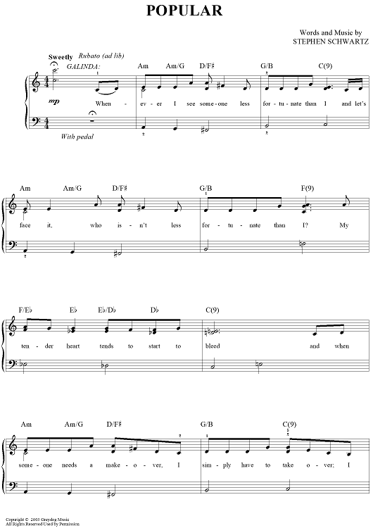 Digital Sheet Music for Popular by Stephen Schwartz scored for Easy Piano; id:380607