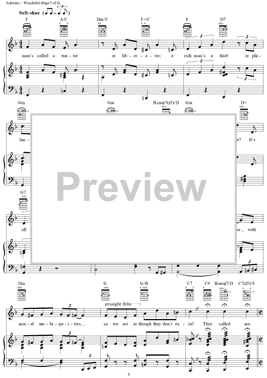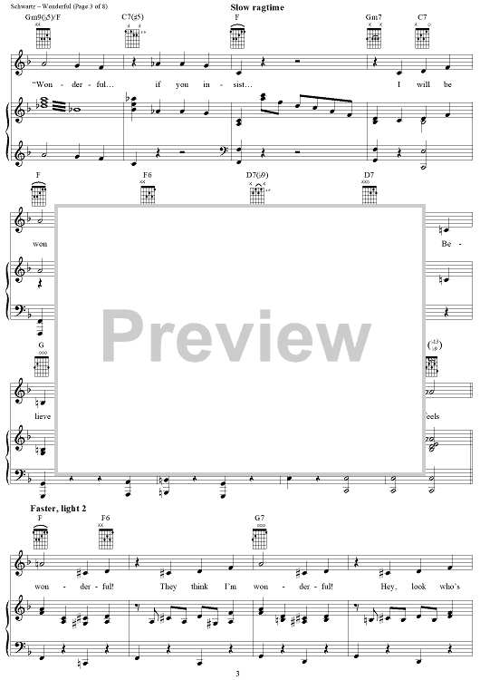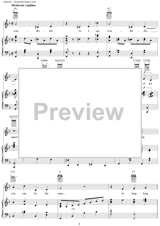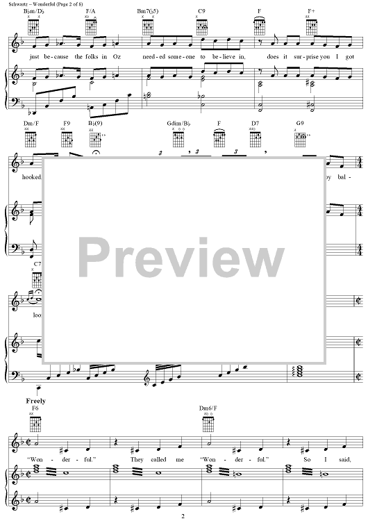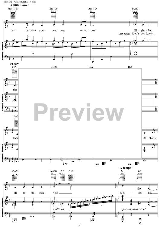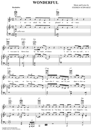 Digital Sheet Music for Wonderful by Stephen Schwartz scored for Piano/Vocal/Chords; id:367212