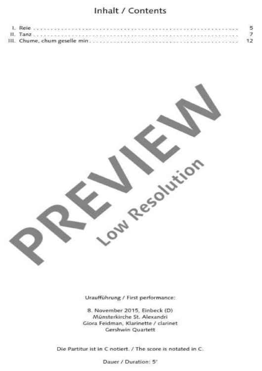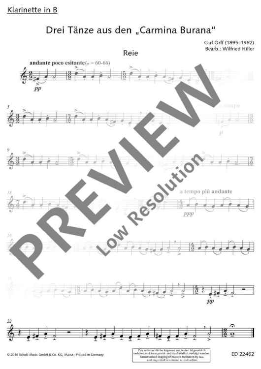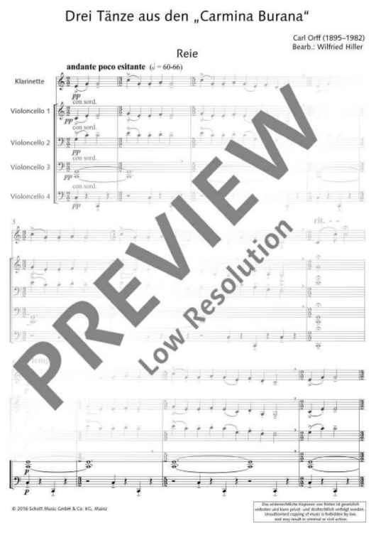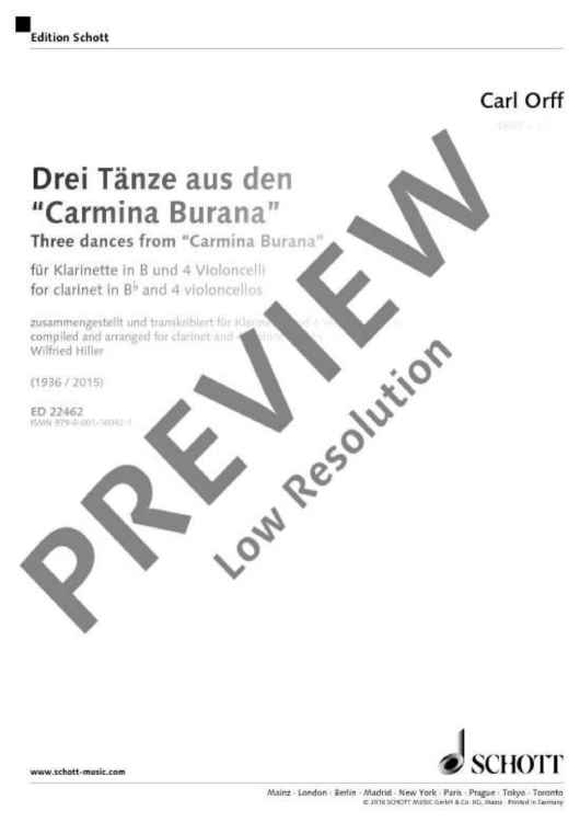 Wilfried Hiller arranged three dances from Carl Orff's Carmina Burana for the famous klezmer clarinettist Giora Feidman. The version for clarinet and four violoncellos was first performed by him together with the Gershwin Quartet in 2015.