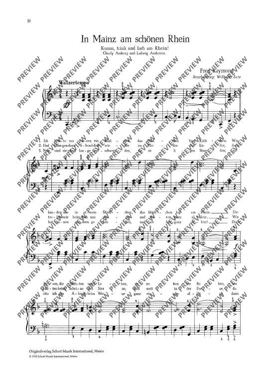 Digital Sheet Music for In Mainz am schönen Rhein by Fred Raymond, Wilhelm Lutz scored for Piano With Text; id:483750