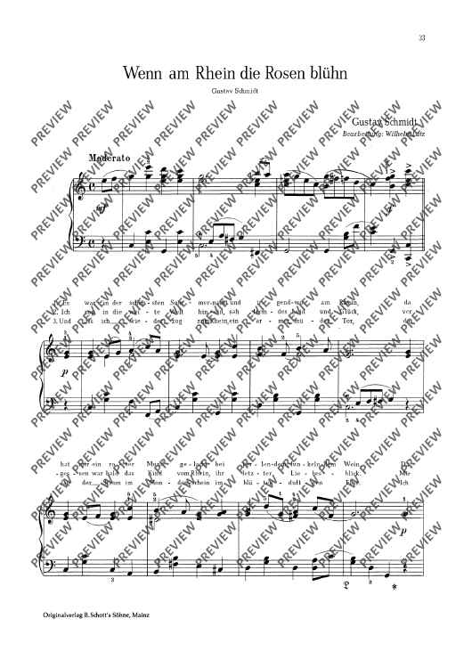 "Wenn am Rhein die Rosen blühn" Sheet Music by Gustav Schmidt