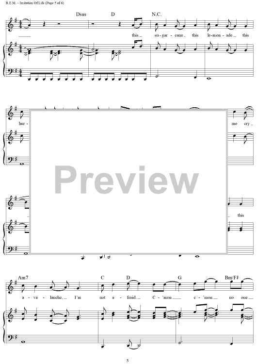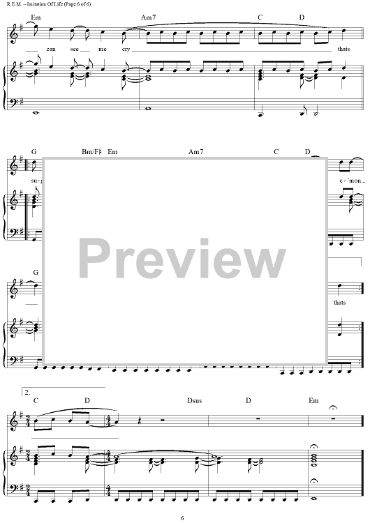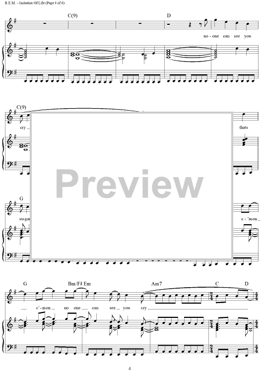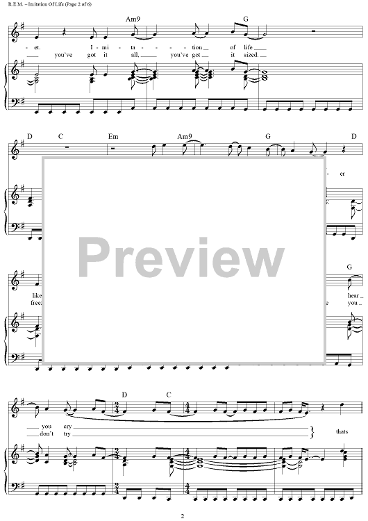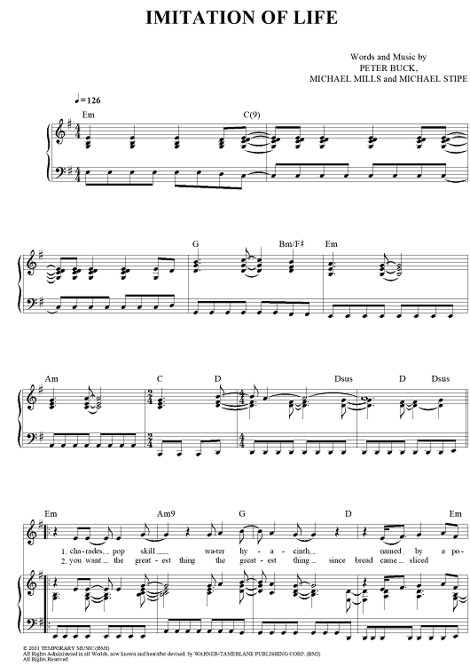Digital Sheet Music for Imitation Of Life by R.E.M., William Berry, Michael Stipe, Peter Buck, Mike Mills scored for Piano/Vocal/Chords; id:433123