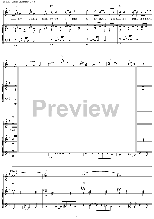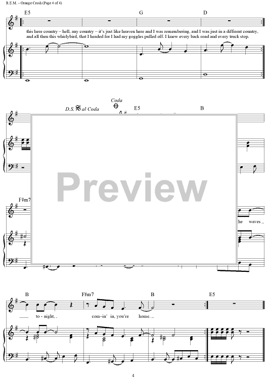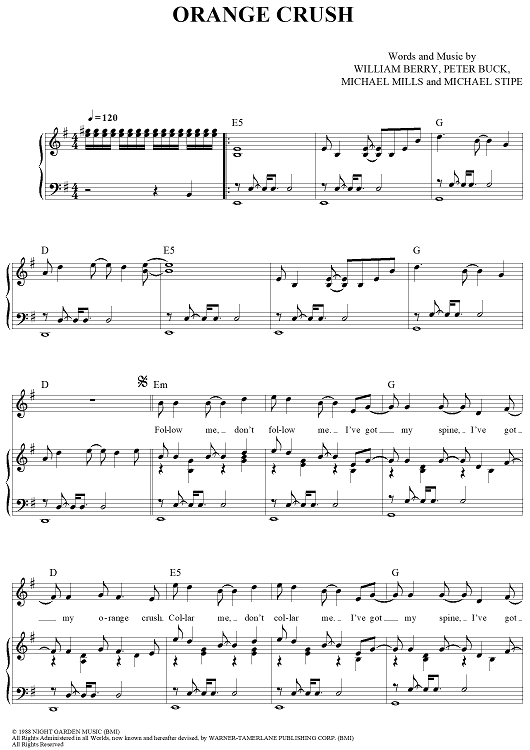 Digital Sheet Music for Orange Crush by R.E.M., William Berry, Michael Stipe, Peter Buck, Mike Mills scored for Piano/Vocal/Chords; id:433113