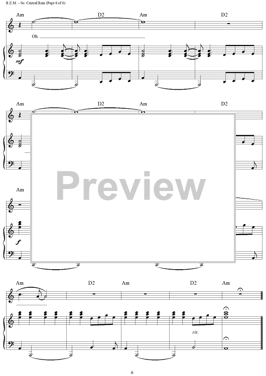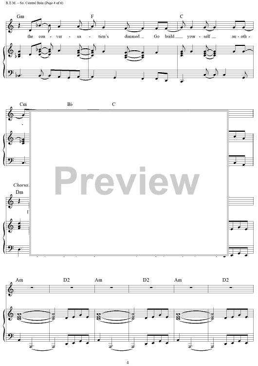 Digital Sheet Music for So. Central Rain (I'm Sorry) by R.E.M., William Berry, Michael Stipe, Peter Buck, Mike Mills scored for Piano/Vocal/Chords; id:433115