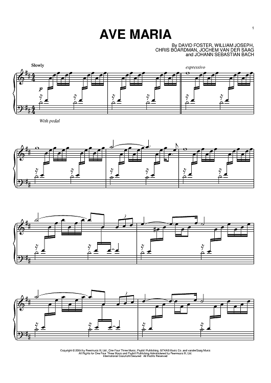 Digital Sheet Music for Ave Maria by Johann Sebastian Bach, Chris Boardman, William Joseph, Jochem Van Der Saag, David Foster scored for Piano; id:384620
