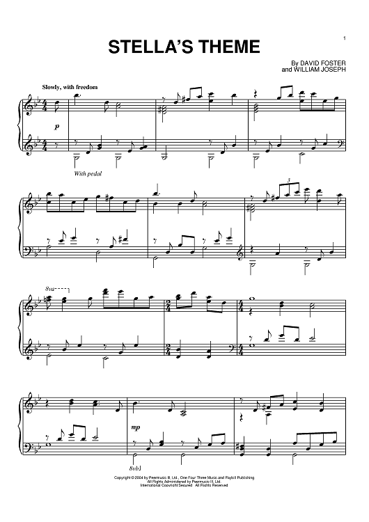 Digital Sheet Music for Stella's Theme by Joseph Williams, William Joseph, David Foster scored for Piano; id:384624