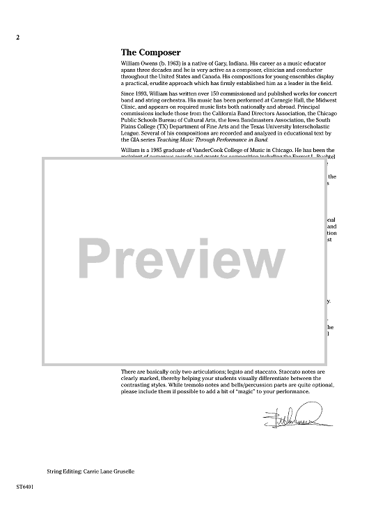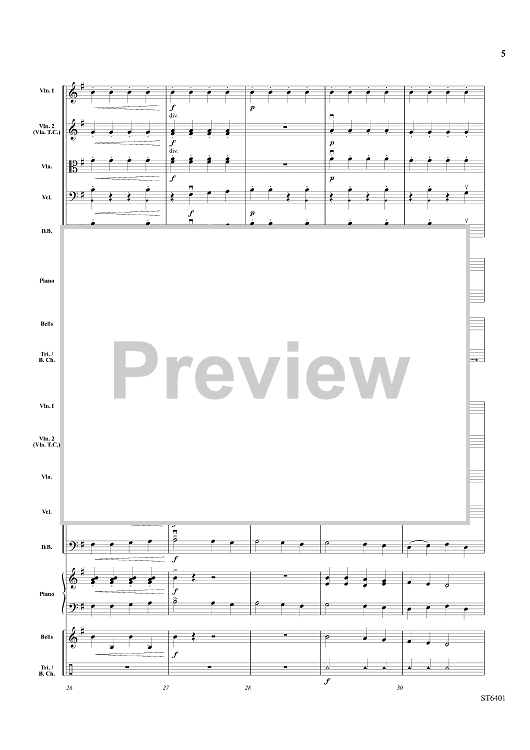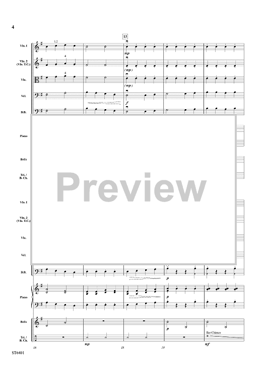The hand truly is quicker than the eye in this whimsical piece for developing strings! Using mostly stepwise motion, it is a wonderful study in legato and staccato styles. Written tremolos can be played at the director’s discretion while optional, carefully scored percussion parts will certainly add to the intrigue. Pure magic! (1:45)