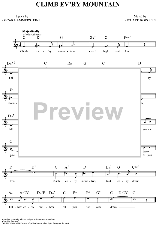 Digital Sheet Music for Climb Ev'ry Mountain by Richard Rodgers, Oscar Hammerstein II scored for Lead Sheet; id:457248