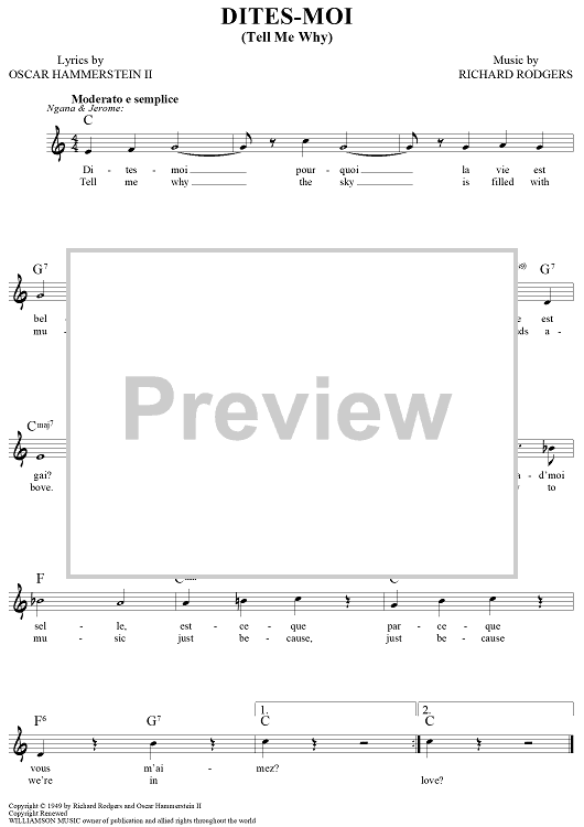 Digital Sheet Music for Dites-Moi (Tell Me Why) by Richard Rodgers, Oscar Hammerstein II scored for Lead Sheet; id:457429