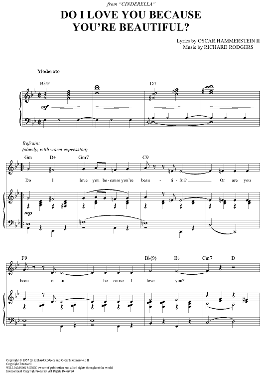 Digital Sheet Music for Do I Love You Because You're Beautiful? from Cinderella by Richard Rodgers, Oscar Hammerstein II, Tony Martin, Vic Damone scored for Piano/Vocal/Chords; id:403297