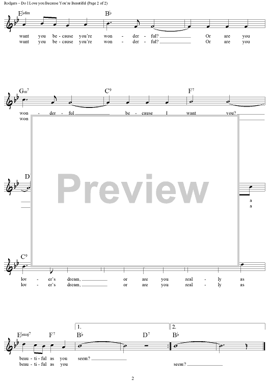Digital Sheet Music for Do I Love You Because You're Beautiful? by Richard Rodgers, Oscar Hammerstein II scored for Lead Sheet; id:441999
