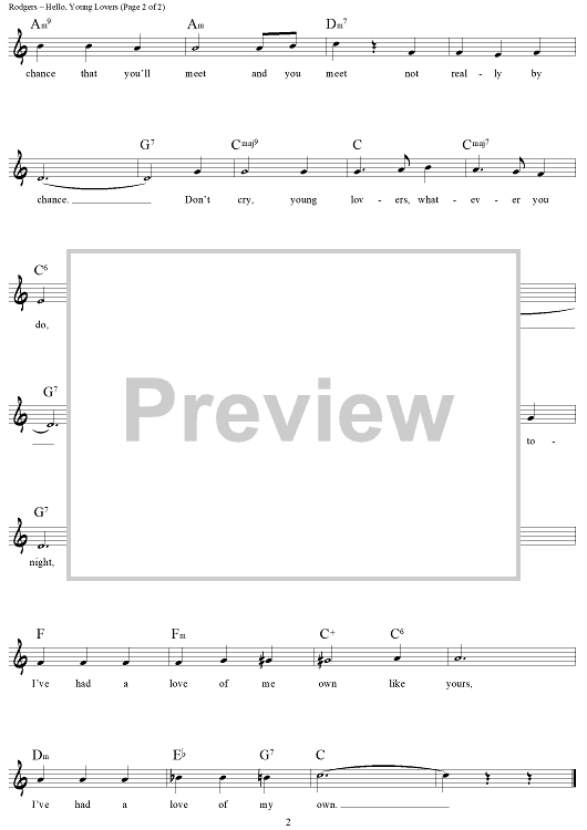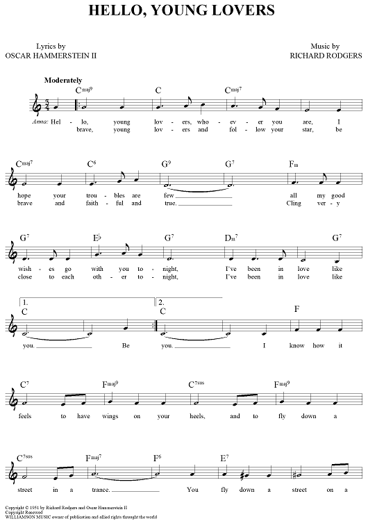 Digital Sheet Music for Hello, Young Lovers by Richard Rodgers, Oscar Hammerstein II scored for Lead Sheet; id:453094