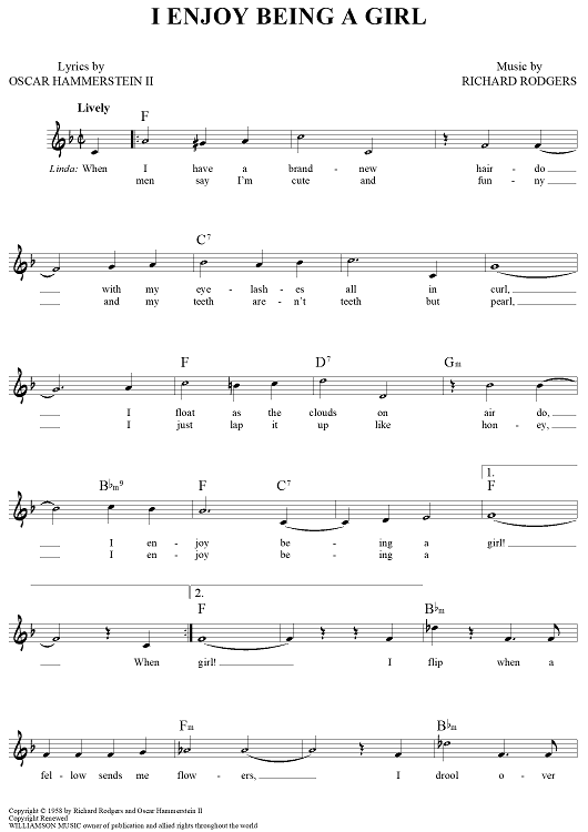 Digital Sheet Music for I Enjoy Being A Girl by Richard Rodgers, Oscar Hammerstein II scored for Lead Sheet; id:444276