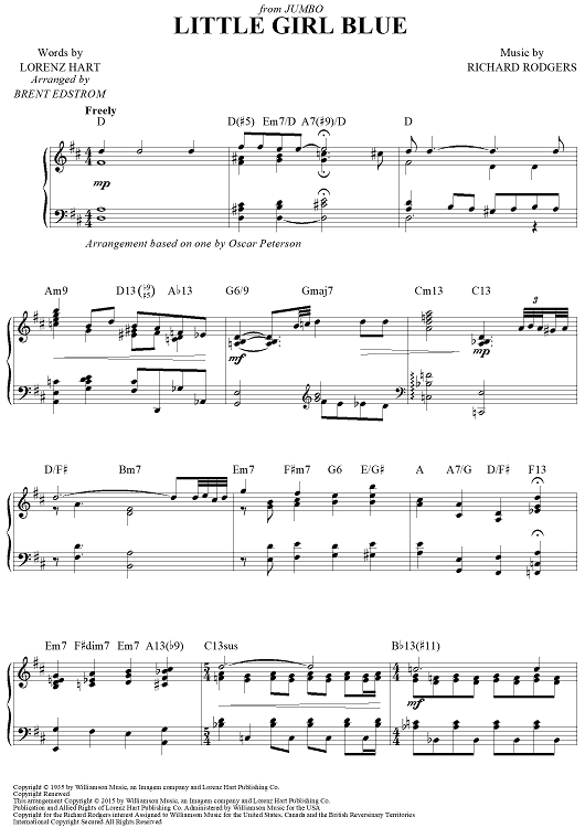 Digital Sheet Music for Little Girl Blue by Richard Rodgers, Lorenz Hart, Brent Edstrom scored for Piano Solo; id:460015