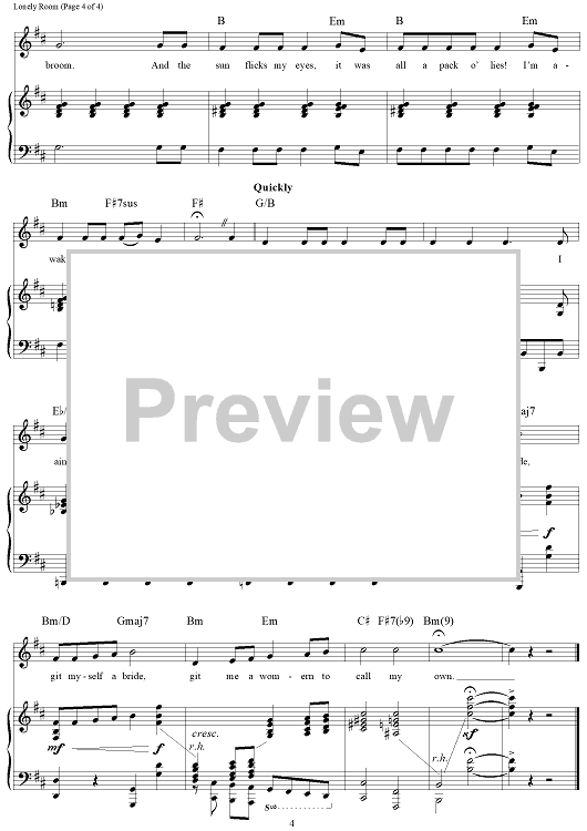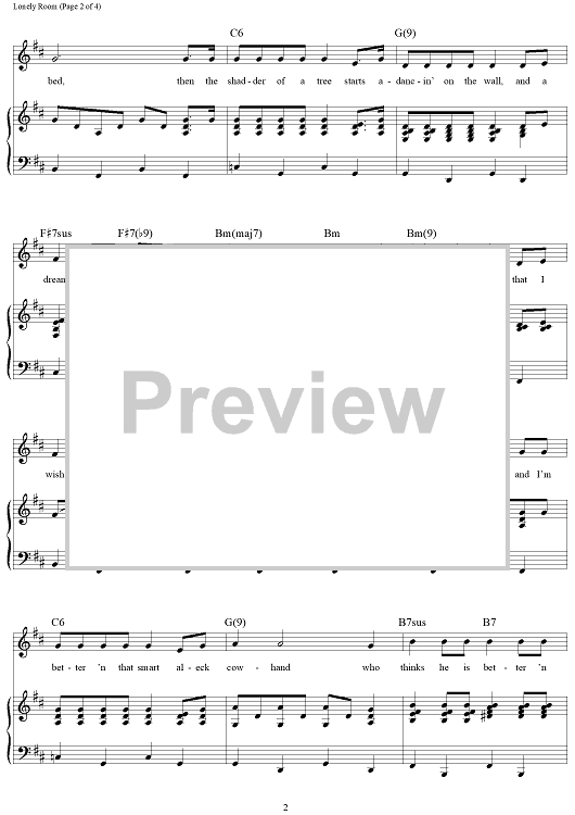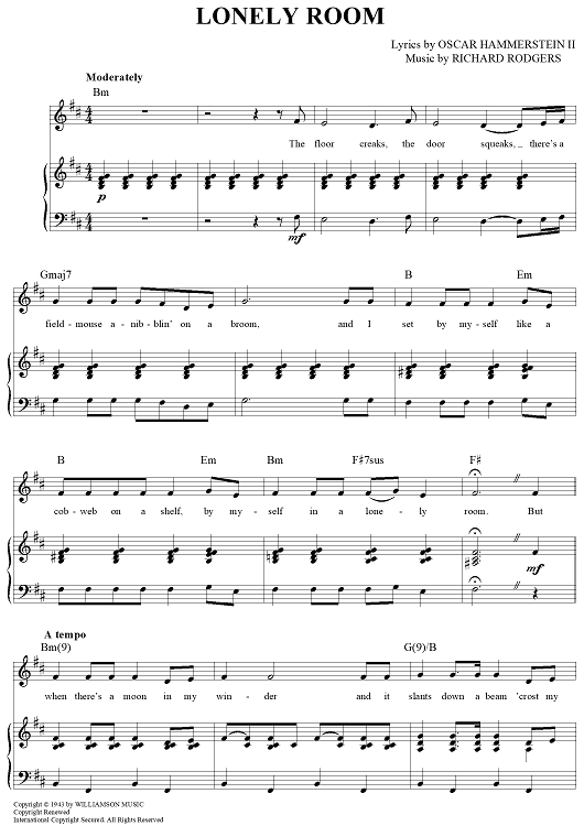 Digital Sheet Music for Lonely Room by Richard Rodgers, Oscar Hammerstein II scored for Piano/Vocal/Chords; id:367071