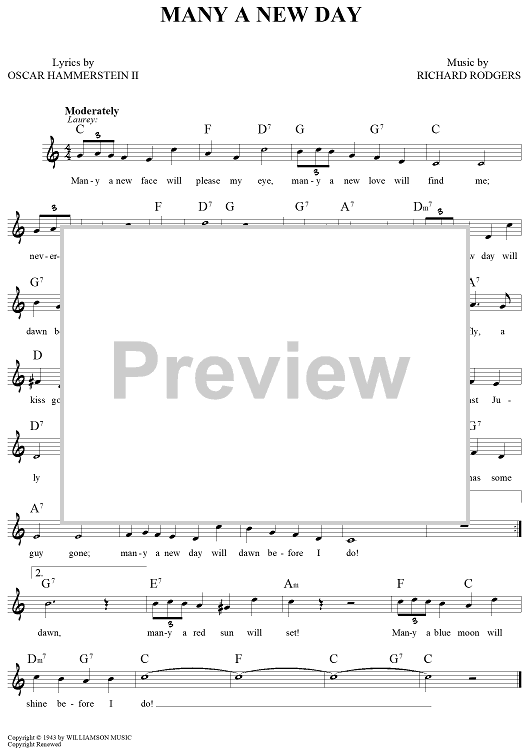 Digital Sheet Music for Many a New Day by Richard Rodgers, Oscar Hammerstein II scored for Lead Sheet; id:456928