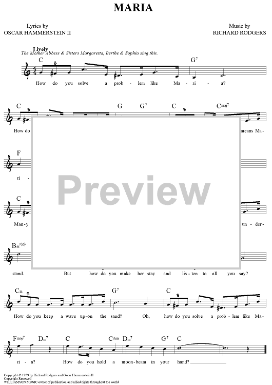Digital Sheet Music for Maria by Richard Rodgers, Oscar Hammerstein II scored for Lead Sheet; id:457090