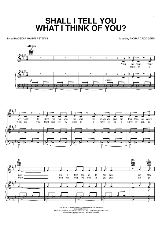 Digital Sheet Music for Shall I Tell You What I Think Of You? by Richard Rodgers, Oscar Hammerstein II scored for Piano/Vocal/Chords; id:393479